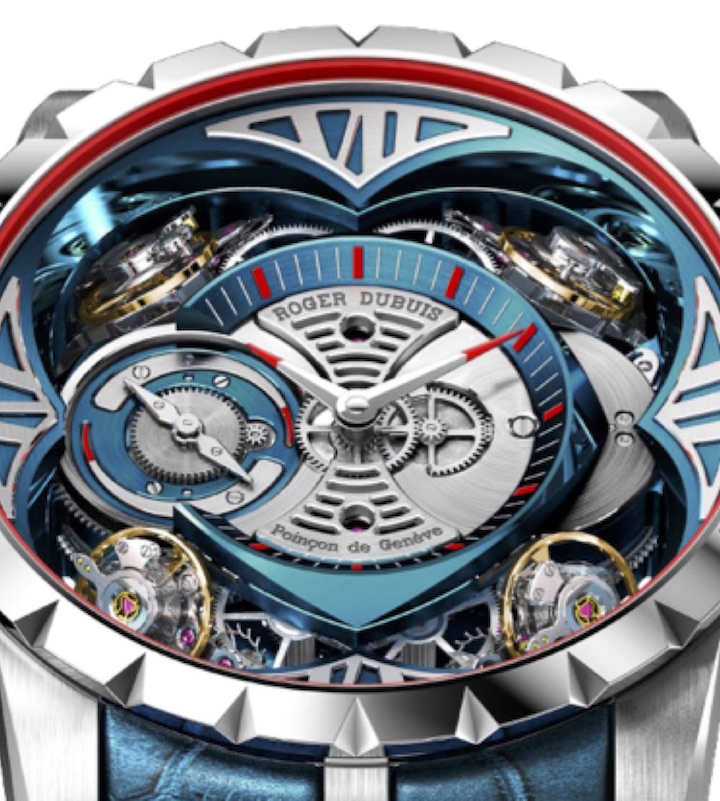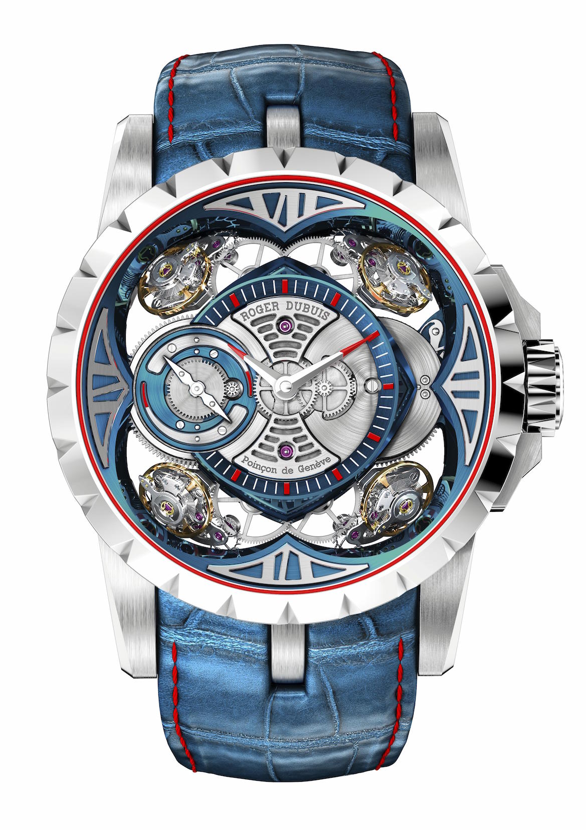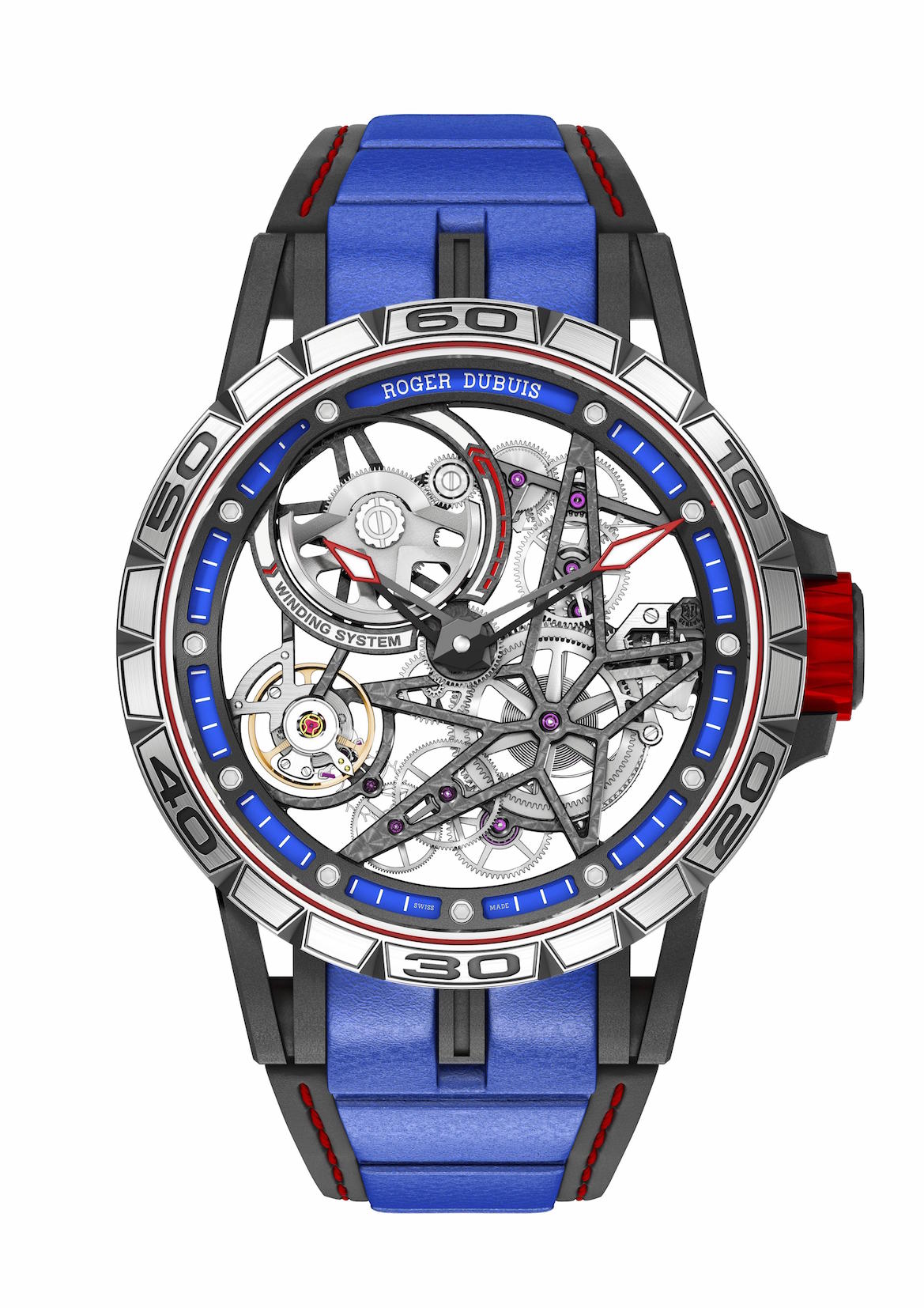 Roger Dubuis Excalibur Spider Skeleton Automatic is inspired by auto racing in color and skeletonization in design.
