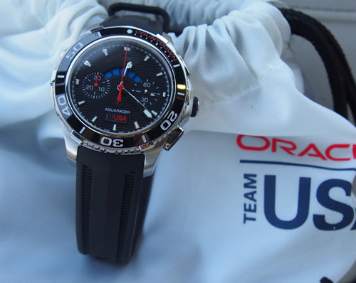 72 Countdown Automatic Chronograph 43mm features the official Team USA logo on the dial and the iconic AC72 boat on the case back. It features a ceramic bezel, rubber coated pushers and screw-in crown. The countdown function makes for at-a-glance visualization of the 5 minutes before the official start of the race. The new watch joins the Aquaracer 500M Calibre 16 Chronograph and the Aquaracer 500M Calibre 5 watch – both launched in 2012 when TAG Heuer announced its official partnership with Oracle Team USA. The new piece retails for $5,300.
