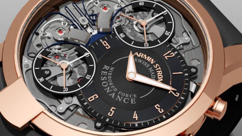 To understand the watch, a little lesson in resonance may help. Essentially, resonance is a phenomenon of physics that states that two oscillating bodies in close proximity influence each other and eventually synchronize. This is the concept Armin Strom embraces in its new Mirrored Force Resonance caliber. The movement features dual regulators developed for maximum precision — and displayed in all its mechanical beauty on the dial side of the watch.