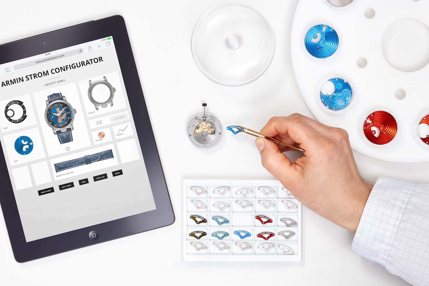 Customers can select movement parts in a host of colors thanks to the Armin Strom Watch Configurator.