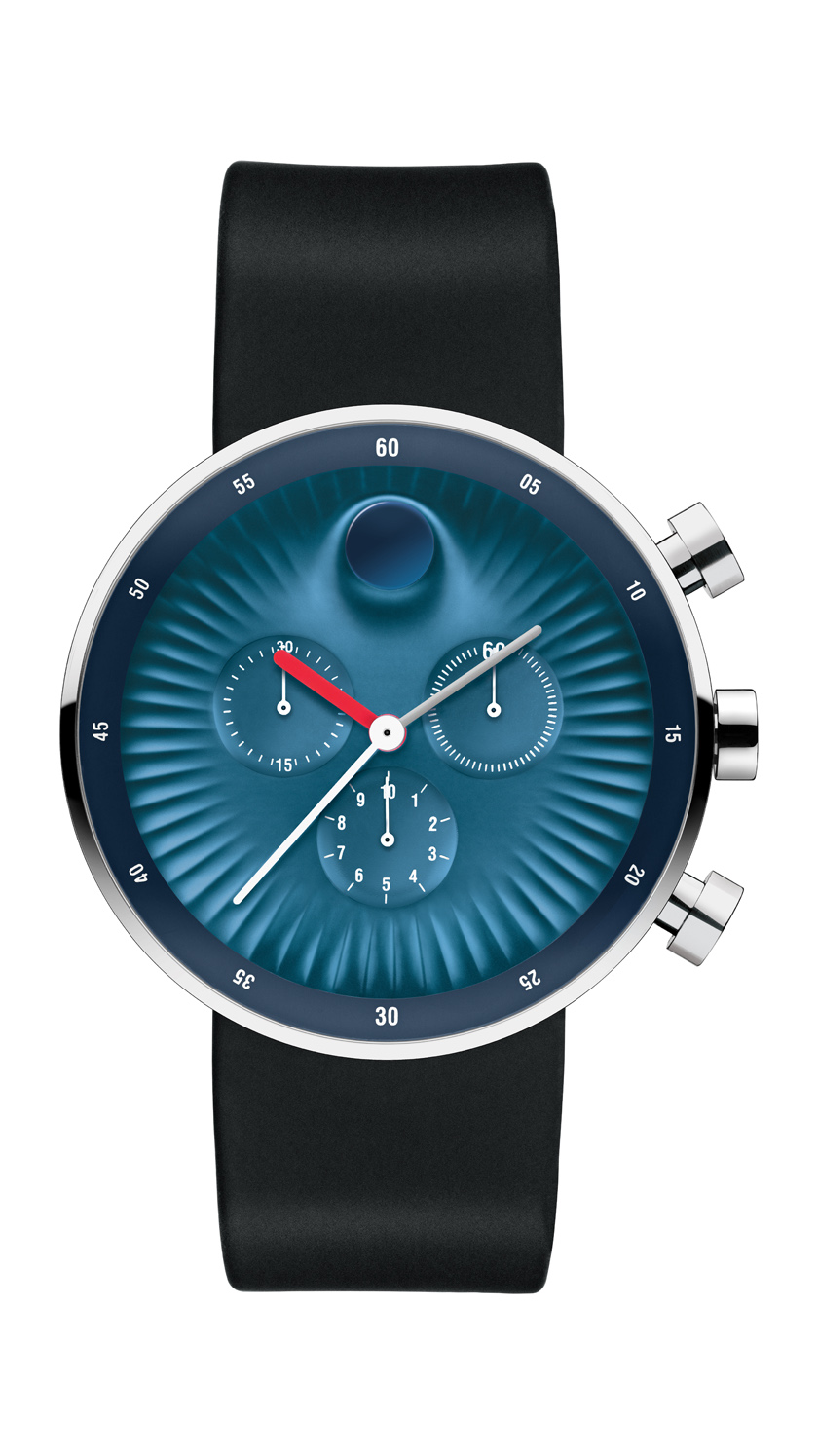 The new watches unveiled there at the show – including one of the most entrancing blue dials – are the second generation in a line the brand created in cooperation with world famous industrial designer Yves Béhar, who puts a 21st century spin on the legendary dot. The newest Movado Edge 42mm chronograph is crafted in polished stainless steel with a concave sandblasted blue aluminum dial with raised polished tonal dot, sculpted ray-textured edge, Arabic minute ring, and glossy midnight blue timing subdials for a package that just looks like a mesmerizing sea on the wrist. The newest coloration joins its first-round siblings that were offered in black, silver and gold tone.
