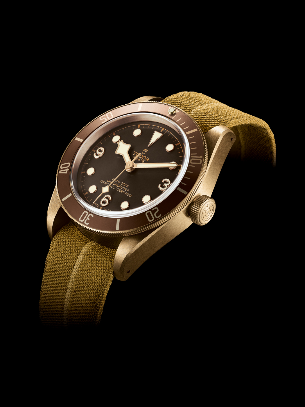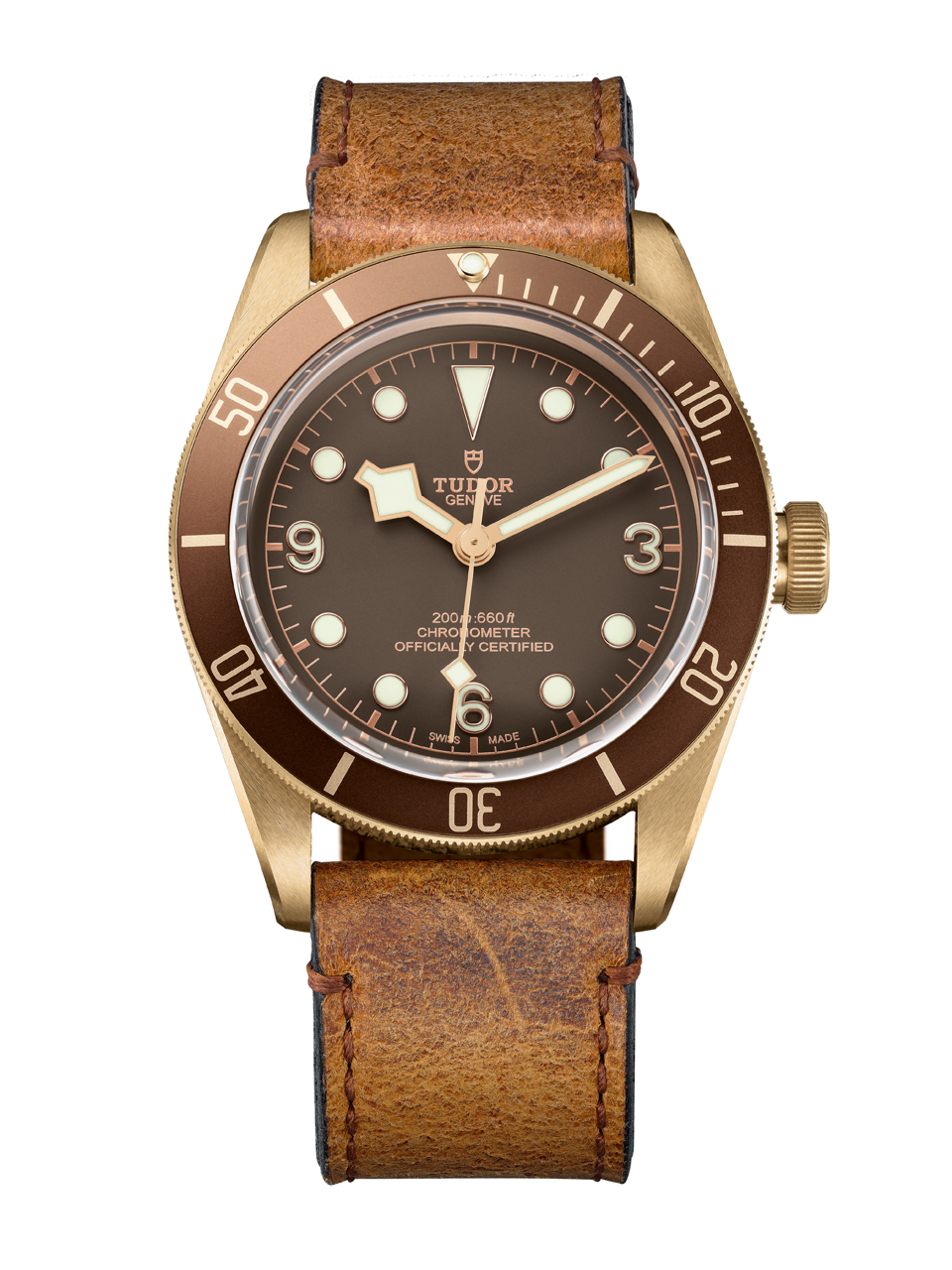 The Tudor Heritage Black Bay Bronze with bronze aluminum bezel is offered with either leather or canvas strap