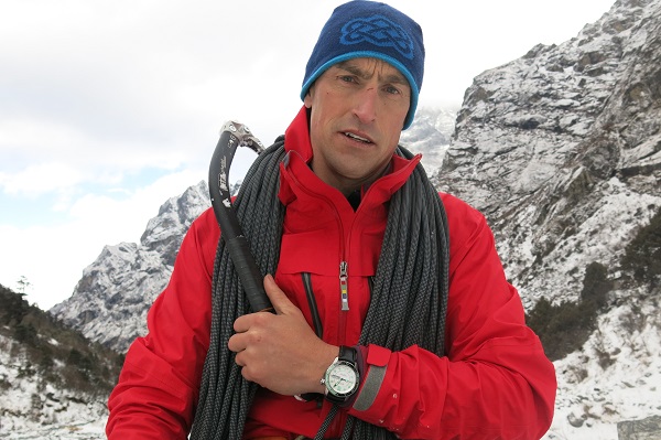 Throughout it all, Kenton wore his Bremont Supermarine S500/SI. The anti-magnetic Faraday cage encasing and anti-shock case mount can withstand depths of 500 meters and apparently altitudes of 8000 and the death zone. The dial features hour, minute, second and a date/day display at the 3 o’clock position. This is a tool watch if there ever was one and if it is good enough to withstand the rigors of Everest, knocking against your desk while putting a power point together will be a breeze.