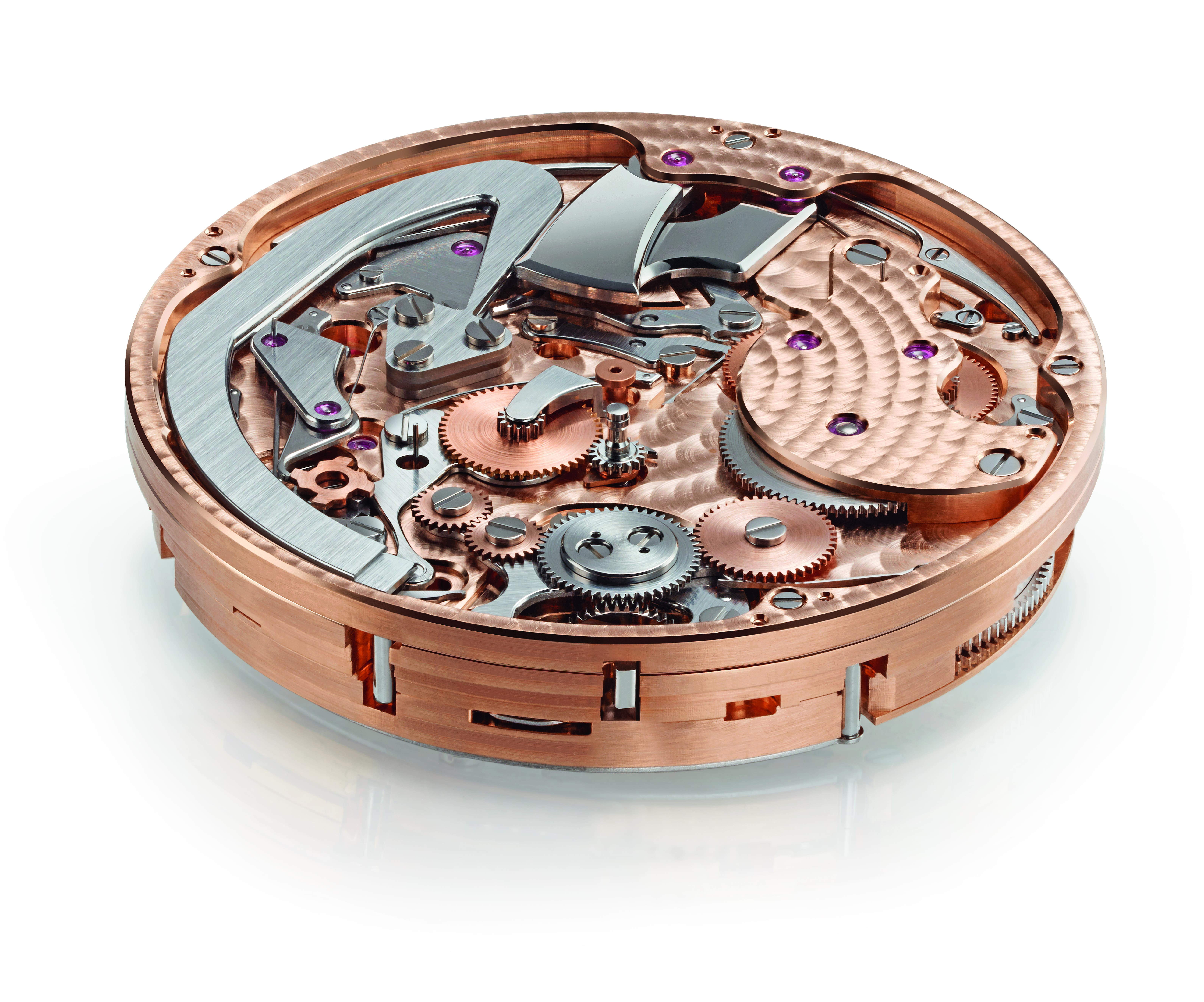 The exceptional Sonnerie Souveraine holds 10 patents and was six years in the research and development stages. The watch movement features extra-flat gongs (3/10th of a millimeter) and a special hammer with a striking weight of 0.3 grams to produce a force between 10 and 15 times less than the force used on a normal minute repeater. Still, it produces better and stronger sound thanks to the technical developments of the movmeent and the fact that the watch is crafted in steel. This watch offers the wearer three striking choices: Grande Sonnerie, Petite Sonnerie and Silence. Additionally, the pusher at 2 o’clock activates the Minute Repeater on demand.