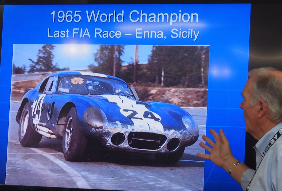 Peter Brock in front of his own Shelby Cobra(R) Daytona Coupe, which he designed and which hit record speeds at Lemans in 1964 and won international acclaim, as well as taking the GT win at 1965 FIA Championships. (Photo: R. Naas)