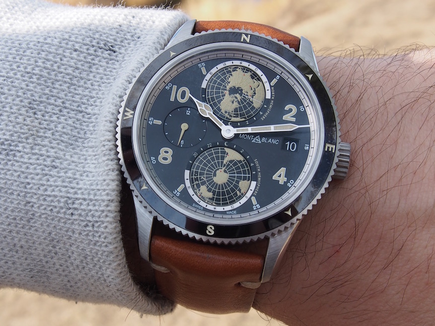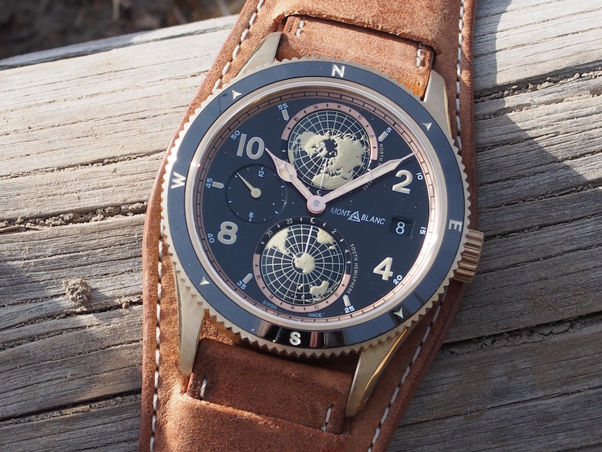 This collection, as mentioned, is part of the all-new direction of Montblanc — embracing the spirit of the great outdoors, hiking, and mountain climbing. We — of course — love the limited edition bronze watch, but we also are really impressed with the stainless steel version. The watch has a real substance to it without being too big and bold on the wrist. The dial, with two turning hemispheres is a real head-turner and it is a lot of look and function at a pretty incredible price range. We expect this watch to be a big seller for Montblanc.