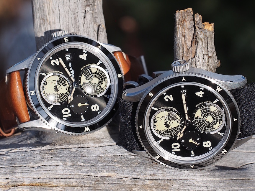 As with the entire Montblanc 1858 collection, this watch pays tribute to 160 years of Minerva history. Easily one of the hottest new “mainstream” watches in the new collection designed to appeal to hikers and mountain climbers, is the Montblanc 1858 Geosphere LE 1600 – a new worldtime complication with two turning hemispheres on the dial. The northern hemisphere, with a day/night indication, resides at 12:00 on the dial, while the turning southern hemisphere, also with day/night indication, sits on the southern most part of the dial at 6:00. The northern hemisphere rotates counter-clockwise, while the southern hemisphere rotates clockwise. The watch offers a second time zone and a separate second-time-zone corrector. It also offers hours, minutes and date indication. Both the local time and home time are set directly from the crown.