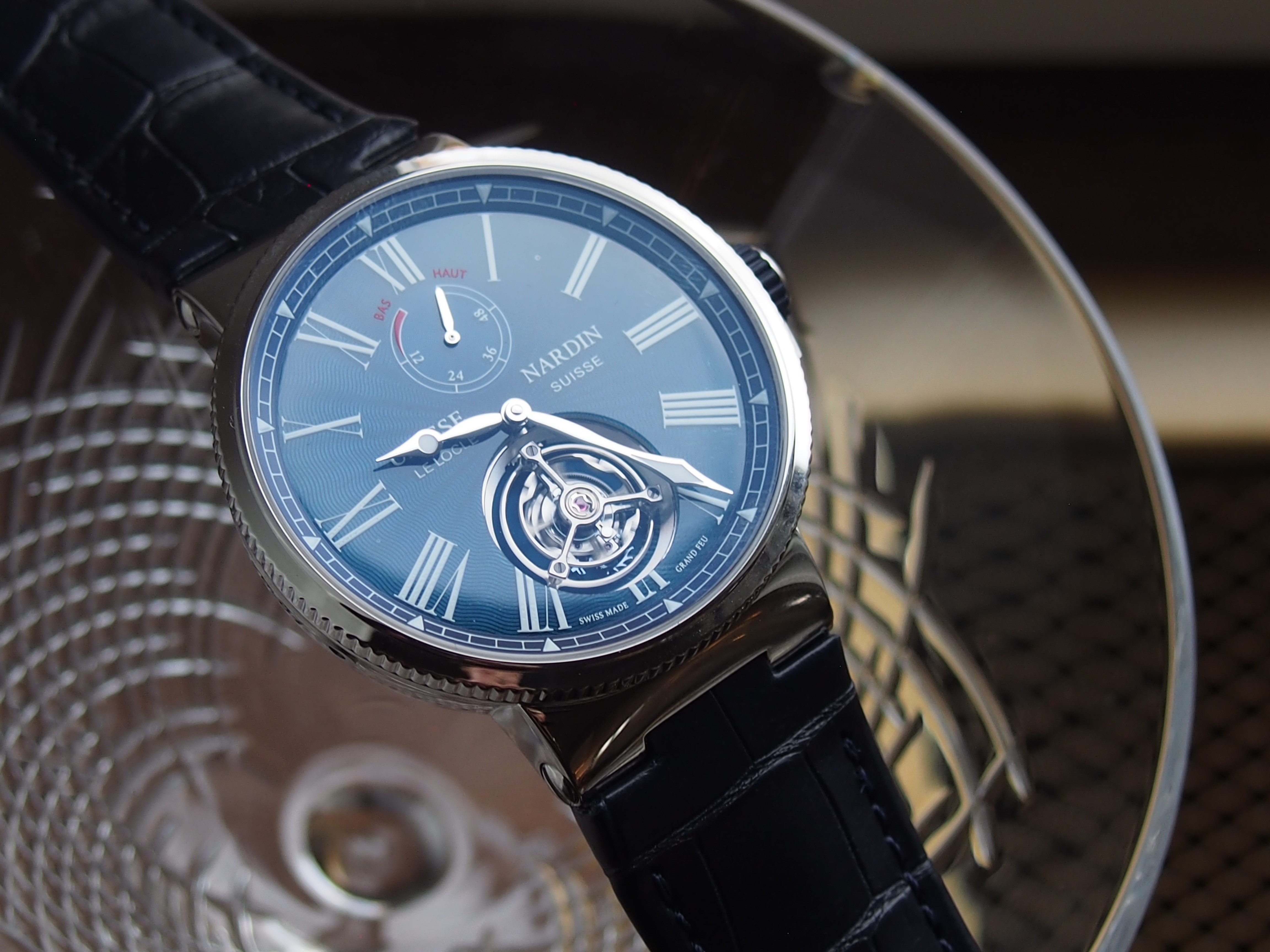 The Ulysse Nardin Marine Tourbillon Blue Grand Feu watch carries an amazing price point for a tourbillon.(Photo: R. Naas)
