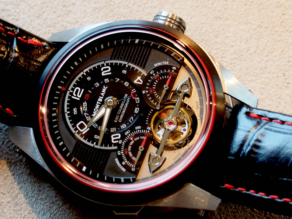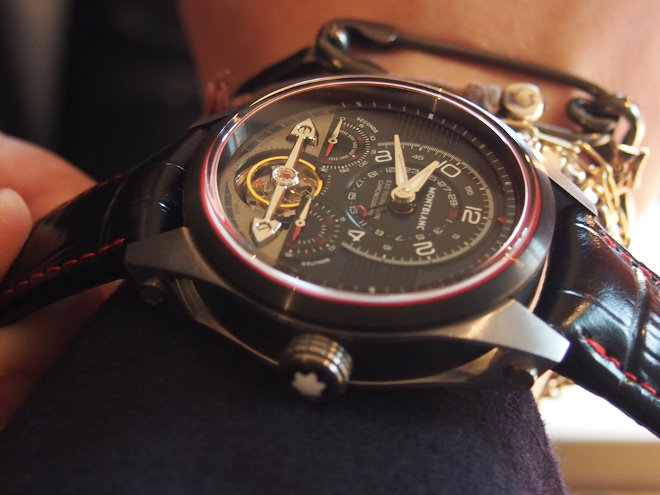 Meanwhile, here we bring you a fast look at one of the standouts making its way to wrists next year: the TimeWalker ExoTourbillon Minute Chronograph. Created in a limited edition of just 100 pieces, this watch is an eye-catcher. In fact, I caught my first glimpse of it on the wrist of Jerome Lambert, Montblanc CEO. The minute I saw it, I was stealing it away to take a closer look.