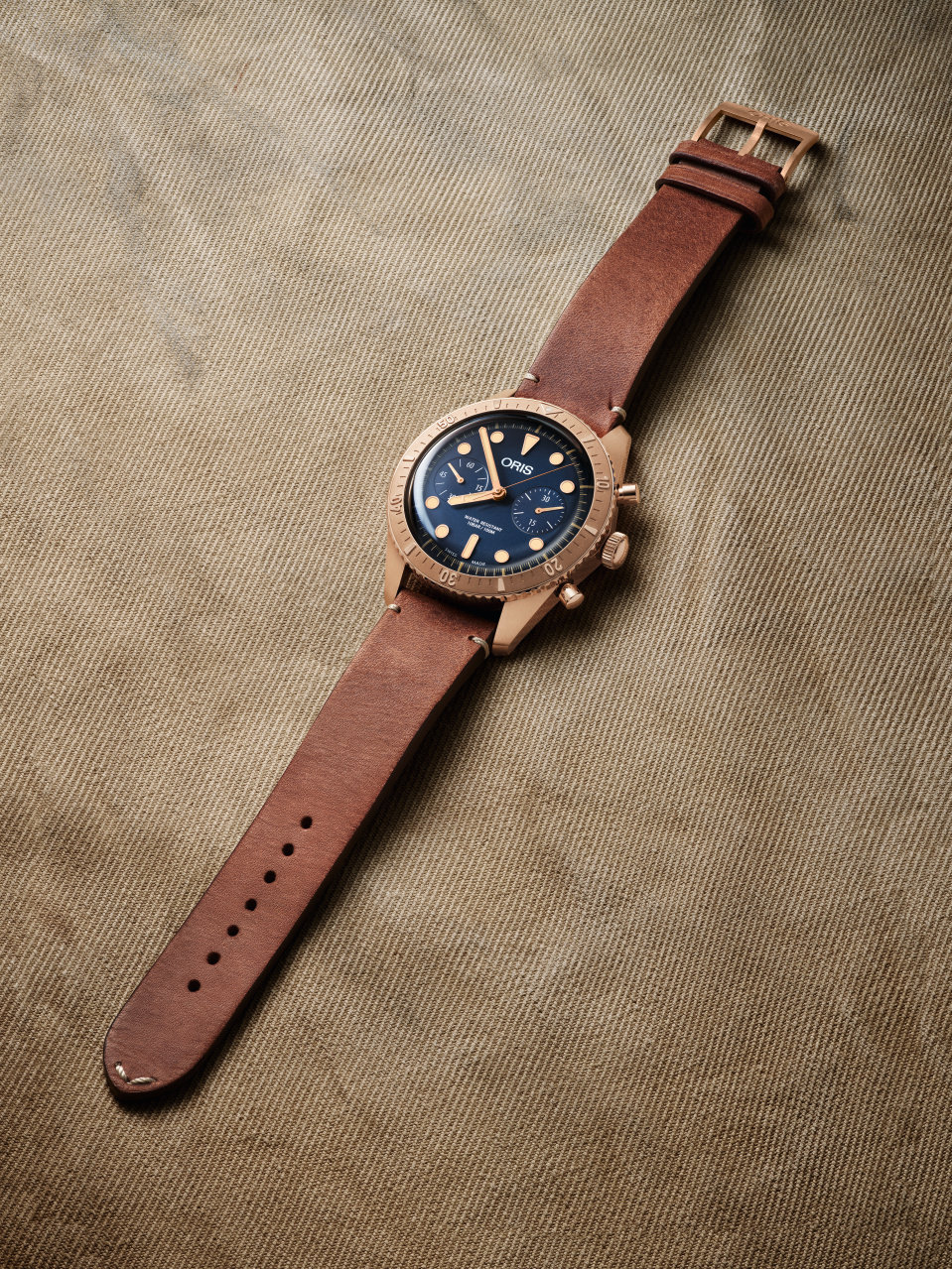 The watch is a tribute to a real American hero, US Naval Master Diver Carl Brashear. Similar to the first watch, which was a time only piece, the Oris Carl Brashear Chronograph Limited Edition has its roots in the Oris Divers Sixty-Five and is cast in bronze.