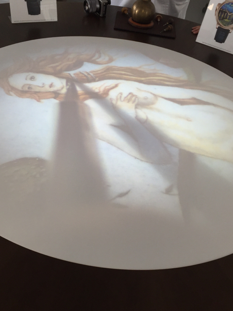 As the artists are hand painting the dial, the image is live-streamed onto a table in the center of the room.