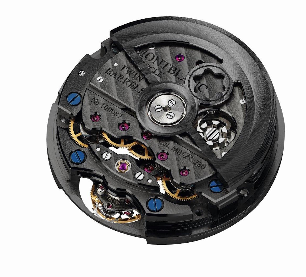Montblanc Manufacture Caliber MB R230 All-Black mechanical movement with double barrel, automatic winding mechanism, patented one-minute ExoTourbillon with quick stop-second mechanism