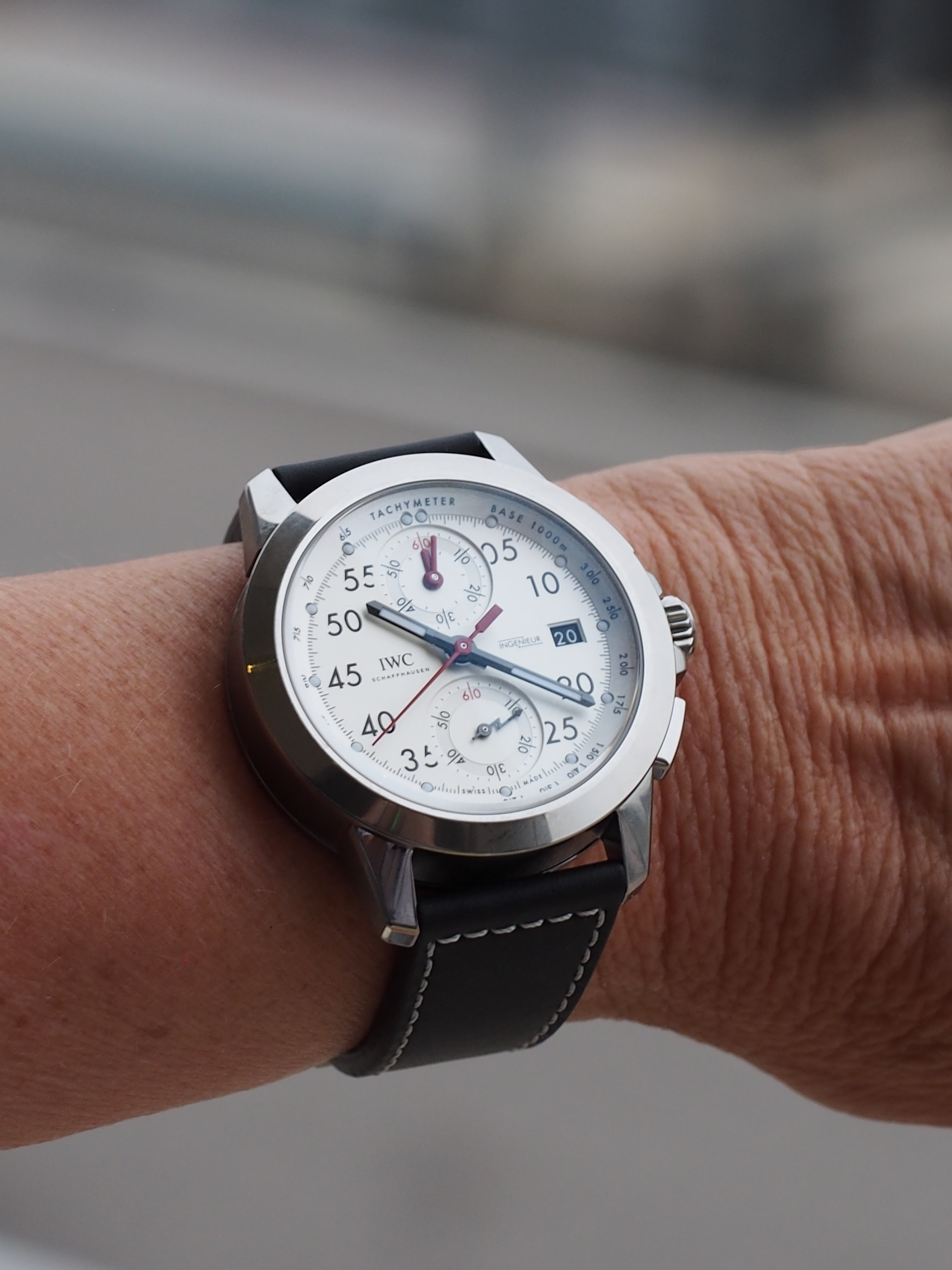 Even better than the racing (or at least, as good), was the fact that we few journalists joining IWC got the chance to wear different IWC watches while there, including the all-new IWC Ingenieur Chronograph Sport Edition 50th Anniversary of Mercedes AMG watch.