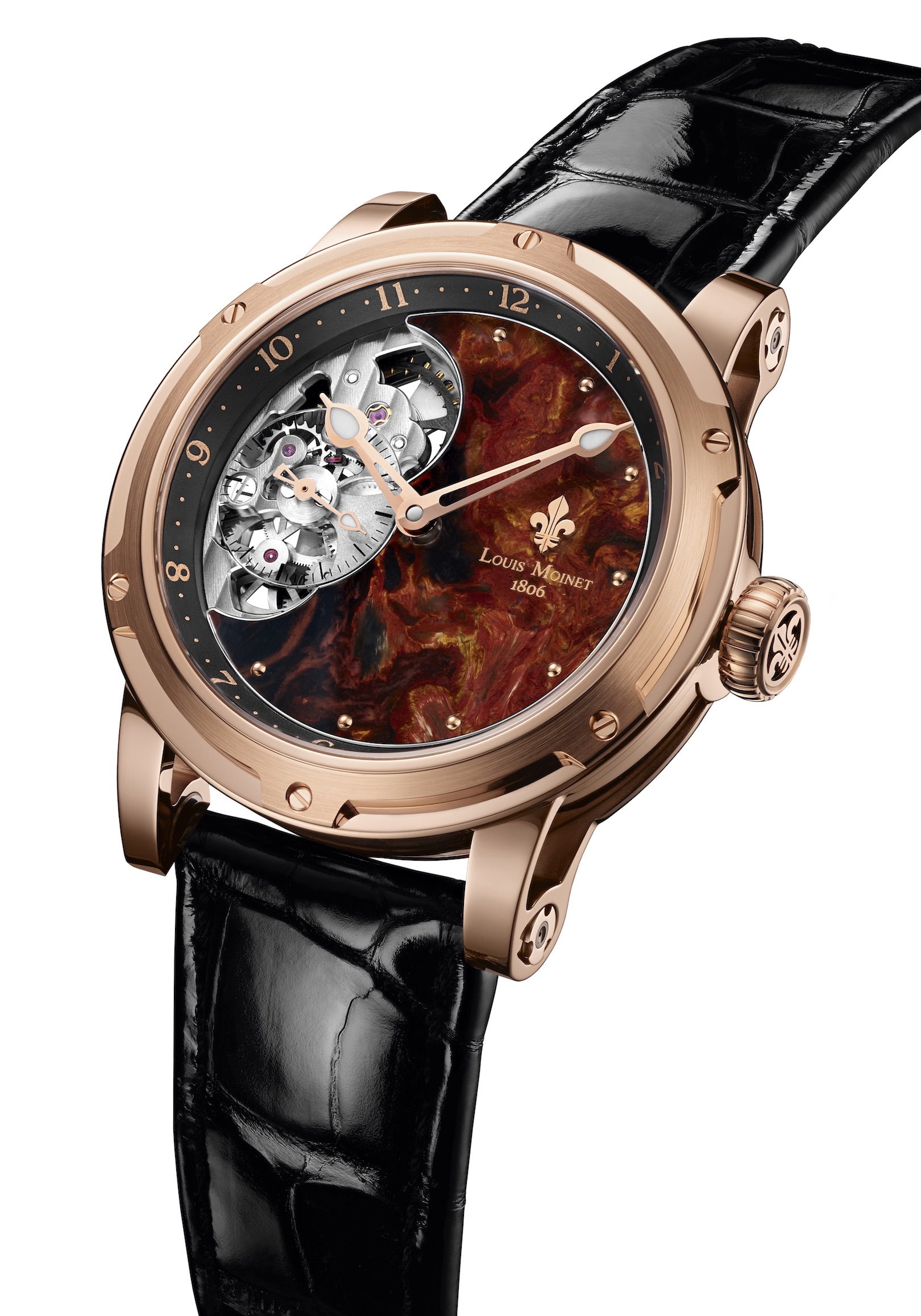 In typical Louis Moinet style, the dials of the new Moscow boutique pieces are made of rare minerals.