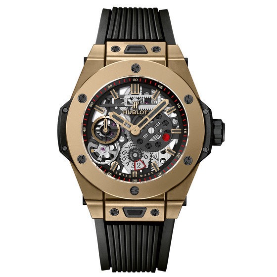Just before 2016 came to a close, Hublot unveiled its newest in-house-made movement: HUB1201. The caliber is highly unusual in that its construction enables the interlocking power reserve system to be viewed from the dial side. The movement is housed in a watch the brand is calling the Big Bang Meca-10, with a case made from Hublot’s proprietary Magic Gold, a scratch-resistant gold that is said to be the hardest of its type in the world, with a hardness of almost 1000 Vickers.