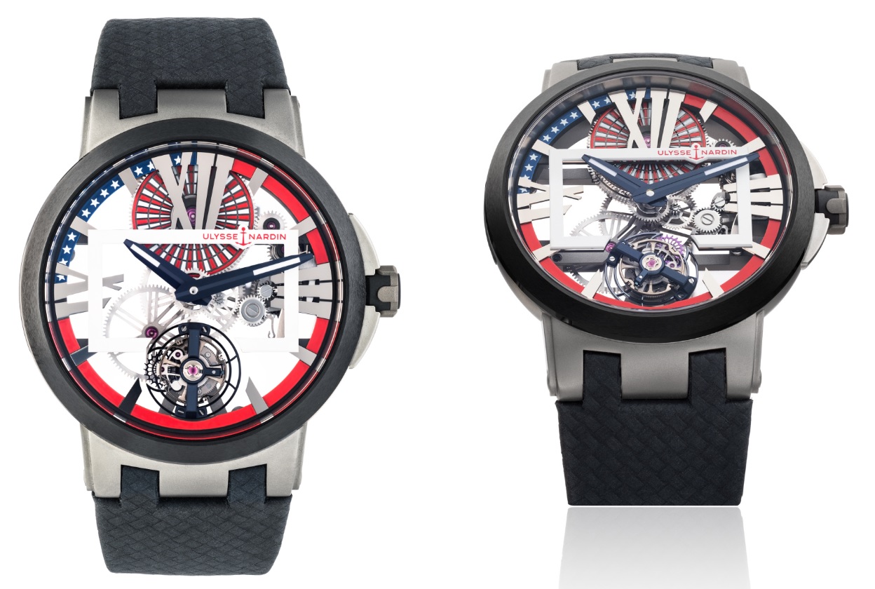 Ulysse Nardin Executive Skeleton Tourbillon Stars & Stripes watch is ultra lightweight thanks to the titanium case.