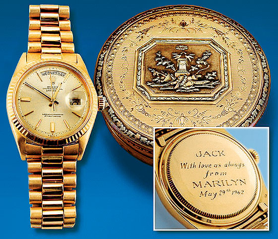 John F. Kennedy, our 35th President, proudly wore a Cartier watch that his wife had given him. However, when Marilyn Monroe gifted him with a Rolex (inscribed), he quickly handed it to his aid with orders to get rid of it. The watch ended up years later at auction.