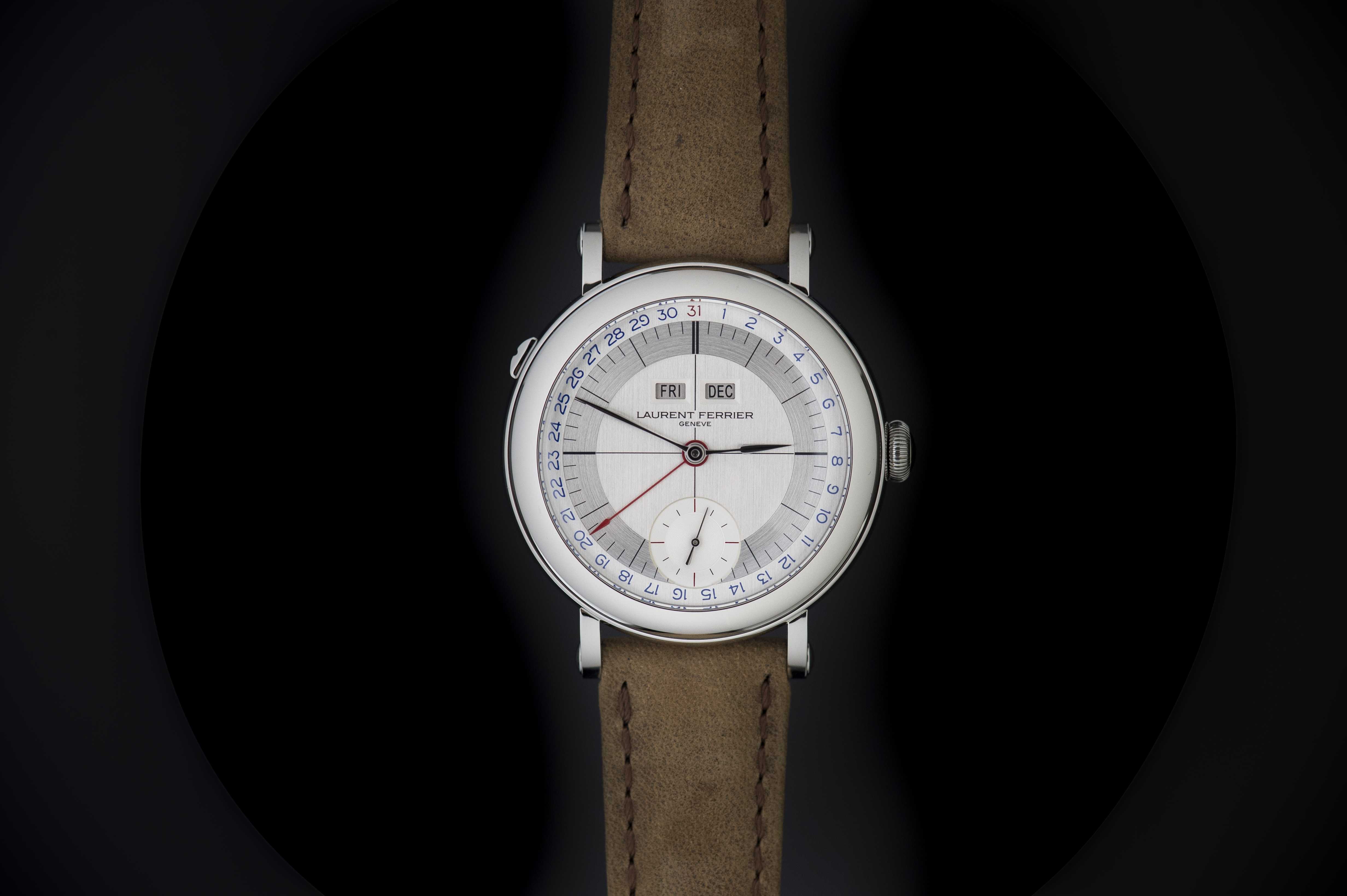 Laurent Ferrier Galet Annual Calendar School Piece has a vintage appeal thanks to the dial, color accents and strap.