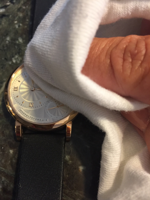 - Proper cleaning. Before you put your watch on, take a soft, dry, non-abrasive cloth (such as those used to clean sunglass or eyeglass lenses) and wipe the crystal and bracelet to get fingerprints or dust off of it. It is best not to use water to clean your watch, but if you need water to remove dirt on a bracelet or caseback, for instance, you can use a barely damp soft cloth.