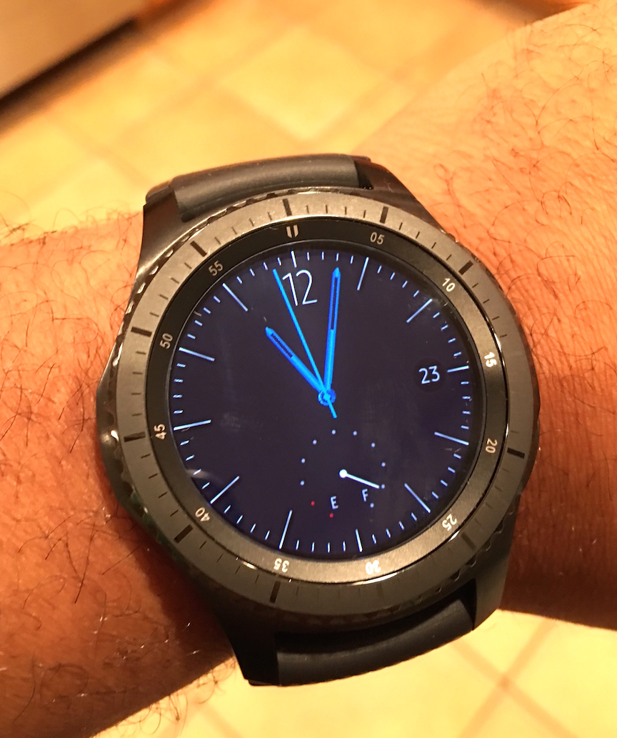 When the package arrived and I was offered both colorways to sample, the Gear S3 Frontier and the Gear S3 Classic. I found myself leaning towards the Gear S3 Frontier and spent the bulk of my time wearing that watch. When I first put the piece on, my initial reaction was that the watch wears extremely well. From the casing, to the weight and proportions of the the dial, it feels like a high end mechanical watch. In other words, it passes the sniff test where it doesn’t feel like a piece of technology trying to be a watch, it simply feels like a watch. The feel of the piece is a testament to the research the Samsung has done into watch manufacturing and craftsmanship.