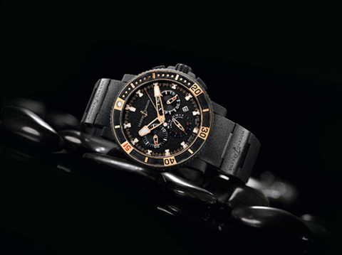 At an exclusive event last night in New York, Ulysse Nardin and recently-announced brand ambassador, Randy Johnson unveiled the brand’s first “Big Unit” watch. And – like the 6’10”-tall man himself who lays claim to that nomenclature, the watch is a nicely sized 45.8 mm. The superb chronograph, which retails for $15,500, was designed in cooperation with Ulysse Nardin and legendary baseball player, Randy Johnson. It is a monochromatic piece in black with blue and red accents. The steel case is coated with black rubber, and the chronograph seconds hand is adorned with the baseball symbol. On the outer bezel of the chronograph, the numerals read 20, 30, 40 in black on gold, but instead of the “50”, there is a red “51” – denoting Johnson’s number.