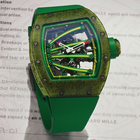 Richard Mille RM 59-01 Yohan Blake Tourbillon Skeleton Composite, No. 40/50. Produced in 50 pieces in 2014, this is a very fine and unusual tonneau-shaped and curved asymmetric, skeletonized composite wristwatch with visible one minute tourbillon regulator and 42 hour power reserve.Yohan Blake nicknamed “The Beast” is a medal-winning Olympic sprinter. He won a gold medal at the 100 m at the 2011 world championships as the youngest 100 m world champion ever, and a silver medal in the 2012 London Olympic Games in the 100 m and 200 m races for the Jamaican team. The RM 059 was developed in collaboration with Yohan and according to Richard Mille “designed to be capable to cut through air” with its asymmetrical, streamlined and aerodynamic shape, resulting in the lowest possible drag coefficient